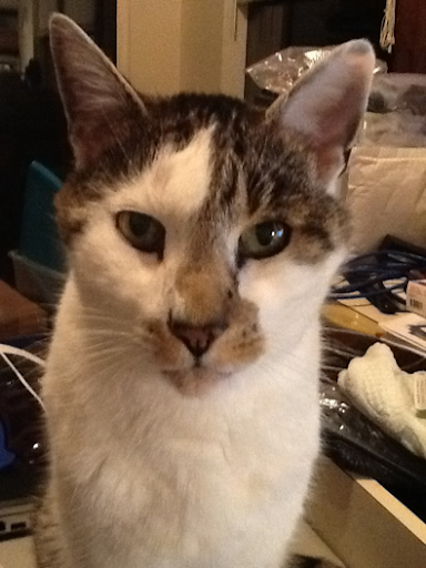 Misty was a beautiful tortoise-shell cat with a sweet personality. Her greatest pleasure was sitting on Dan's lap (always with her special blanket!) as he watched television. The living room will seem so empty without you, Mistella!